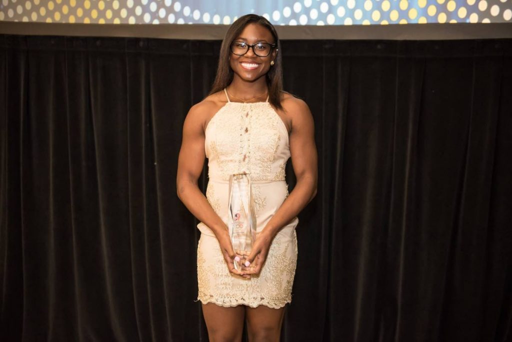 ![]() Enlarge Image TT Olympic Committee boss Brian Lewis, left, joins World 4x400m champs (from left) Lalonde Gordon, Machel Cedenio, Renny Quow and Jereem Richards after they won the TTOC Sportsman of the Year award on Friday at the Hyatt Regency, Port of Spain. ![]() Enlarge Image TTOC Junior Sportswoman of the Year Khalifa St Fort shows off her trophy. ![]() Enlarge Image Adell Colthrust, right, collects his TTOC Junior Sportsman of the Year award on Friday evening. ![]() |