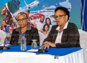 This photo, posted on the Commonwealth Games Federation’s website shows seated from left, TT Commonwealth Games Association president Diane Henderson, Sport Minister Shamfa Cudjoe and federatioin president Dame Louise Martin during the federation’s visit to TT in 2022 for the signing off of documents for this country to host the 7th Commonwealth Youth Games. –